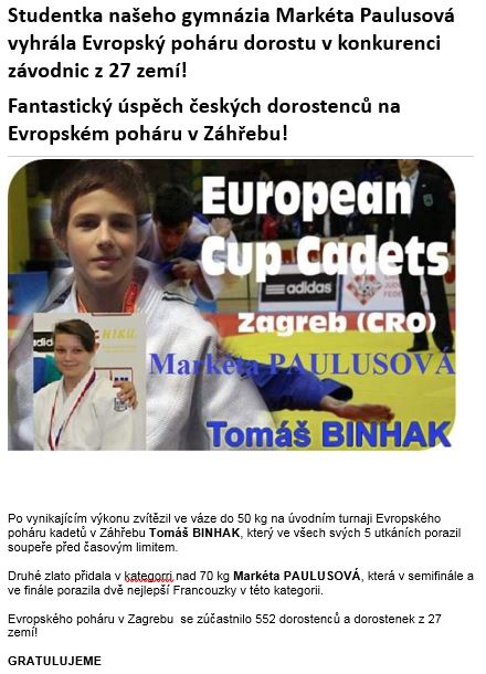 Úvod > Galerie > Sport na SG > Judo na SG > Závody > Mezinárodní soutěže > Evropský pohár dorostenců v Záhřebu, 2015