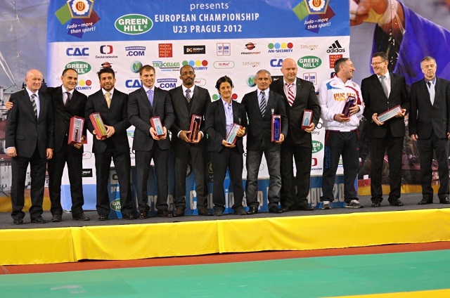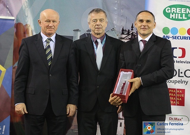 Vicepresident EUJ M.Vachun, Předseda ČSJu J. Dolejš Trenér Ruska E. Gamba.jpg