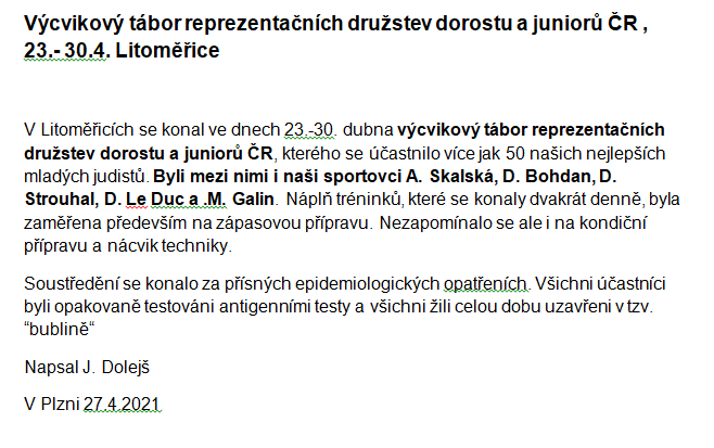 Úvod > Galerie > Sport na SG > Judo na SG > Soustředění > VT RDD, RDJ Litoměřice, 23.-30.4. 2021